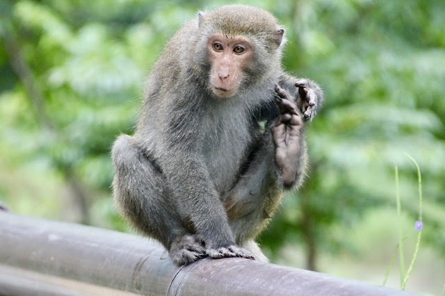 Down by the cool pool they had this really cool spot with a suspension bridge and some raised walking paths. This might be about the best photo I've ever taken of an animal, this big monkey family was hanging out at the gate as we were leaving the park and the patriarch was just chilling watching us. He made the whole family take off down the road as we came through so we got amazing shots of the mamas and their babies as they went.